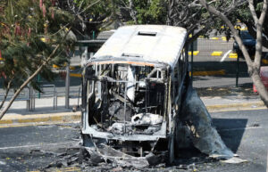 Kendaraan Hangus Berjejer di Jalan Raya Dekat Stadion Piala Dunia Meksiko